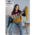 Der Schal wird von einer Spitze zur anderen Spitze gestrickt. Zuerst hat er eine schmale, zunehmende Form, danach folgt ein gerader Mittelteil mit breiten Streifen und zuletzt hat er eine schmale, abnehmende Form. Die Übergänge zwischen den Teilen werden mit verkürzten Reihen gestrickt, um einen schrägen Winkel zu erreichen. Ein schönes Detail ist der I-Cord, welcher um den ganzen Schal herum verläuft.