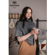 Der Poncho mit Rollkragen wird von oben nach unten in Runden gestrickt. Er hat eine dekorative Verzierung aus drei Streifen und den Abschluss bildet ein Rand aus Krausrippen.