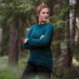 Ein Pulli mit körpernaher Passform, welcher sowohl als unterste, wärmende Schicht als auch als Oberbekleidung passt. Durch die Zöpfe, die den Ärmeln hinauf bis über die Sattelschultern reichen, bekommt der Pulli ein sportliches Aussehen. Der Pulli wird in einem Stück gestrickt und wird durch I-Cord-Abschlüsse eingerahmt.