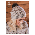 Eine einfache Mütze mit vielen schönen Details. Die Mütze beginnt mit einem gestreiften Rippenbündchen, gefolgt von einem Musterteil mit gepunkteten Streifen und einem Pompon auf der Spitze der Mütze. Die naturnahen Farben erzeugen einen sanften Eindruck, aber natürlich können auch komplett andere Farben gewählt werden. Dies ist ein passendes Projekt für jeden, der gerne mehrfarbige Muster stricken möchte.